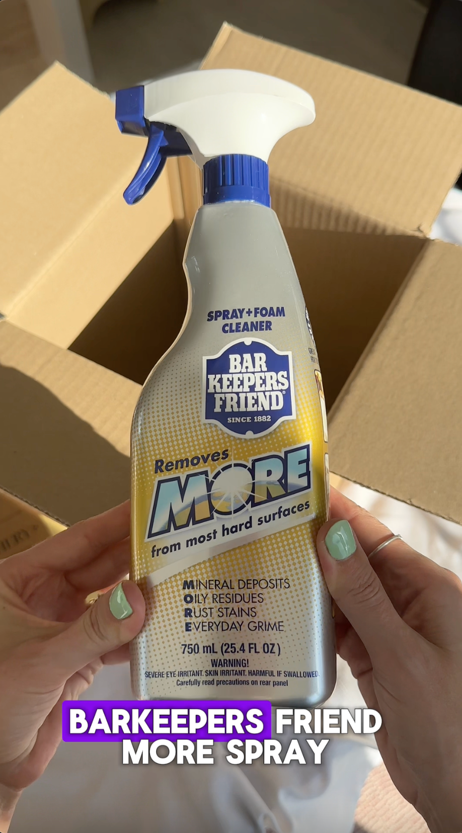 The ingredients in Bar Keepers Friend MORE Spray + Foam are water, citric acid, oxalic acid, surfactant, and fragrance.