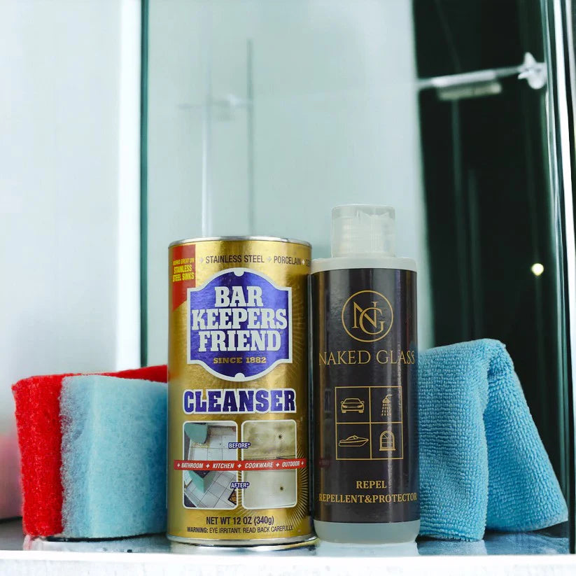 - β Bar Keepers Friend Cleanser & Polish (340g) β Say goodbye to stubborn stains! Use with the Tough Grade Pad for shower glass and the Light Grade Pad for acrylics, chrome, taps, and fixtures.